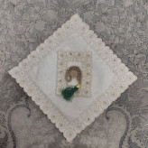 جانماز دوتکه مخمل نگین کاری سفید38سانتیمتری