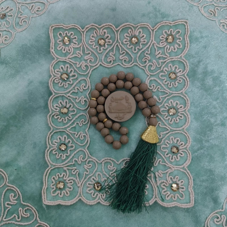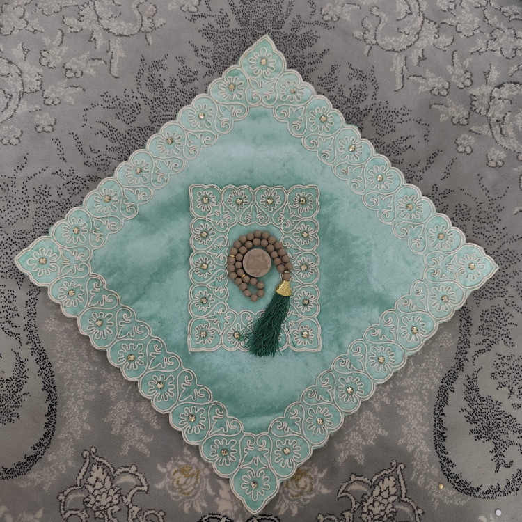 جانماز مخمل سبز پسته ای نگین دار دوتکه 38سانتی