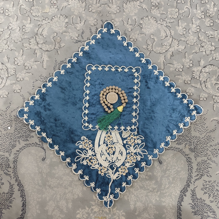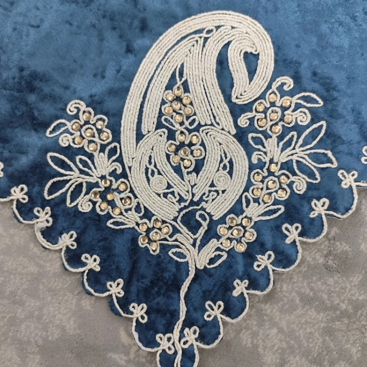 جانماز سنتی مخمل نگین دار ابی سورمه ای38سانتی