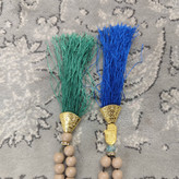 تزئینات: منگوله رنگی (آبی یا سبز) با قطعات طلایی نقشدار