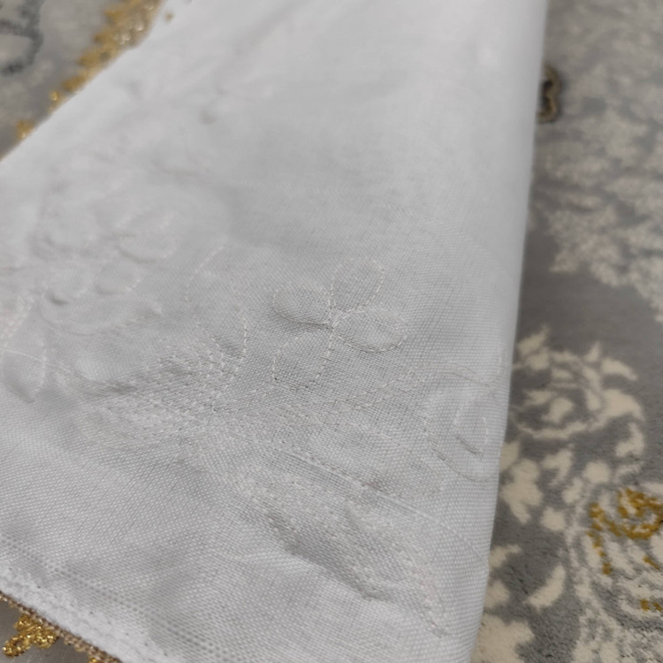 جانماز ترمه سفید نگینکاریشده طلایی | طرح لوکس با آستر پشت | ۴۰ سانتیمتر