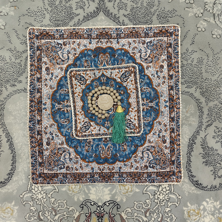 جانماز خاتم دوتکه سرمهای | آستردار و یراقدوزیشده | ۳۸ سانتیمتر | طرح اصیل ایرانی