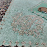 سجاده مخمل سه‌تکه سبز پسته‌ای | استر‌دار، قابل شست‌وشو، طرح نفیس