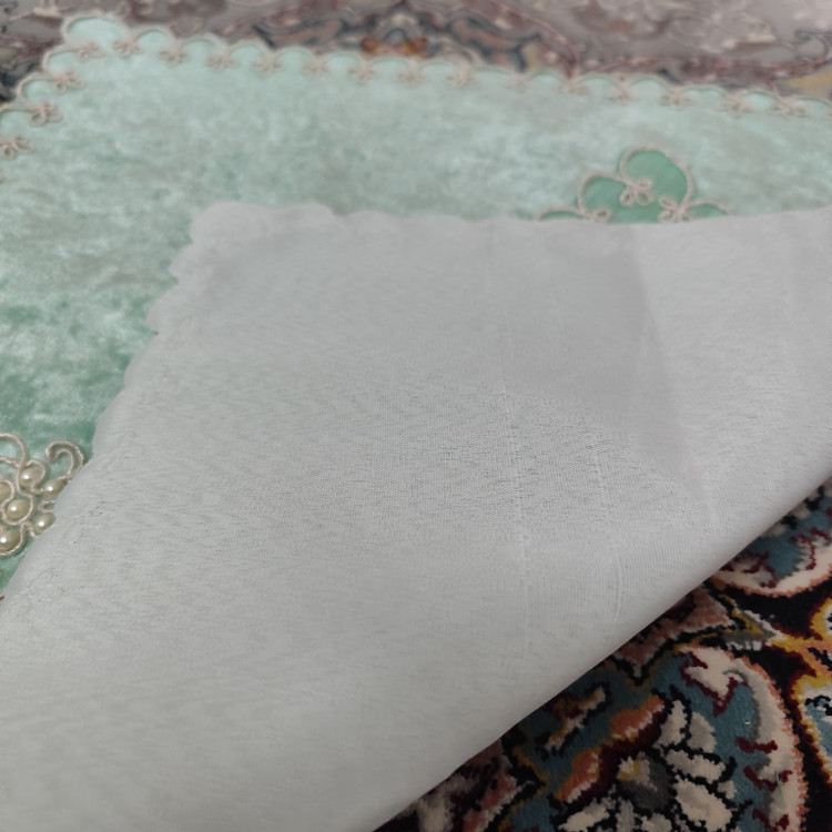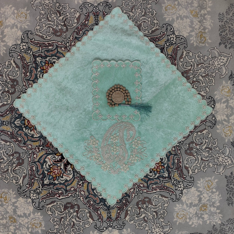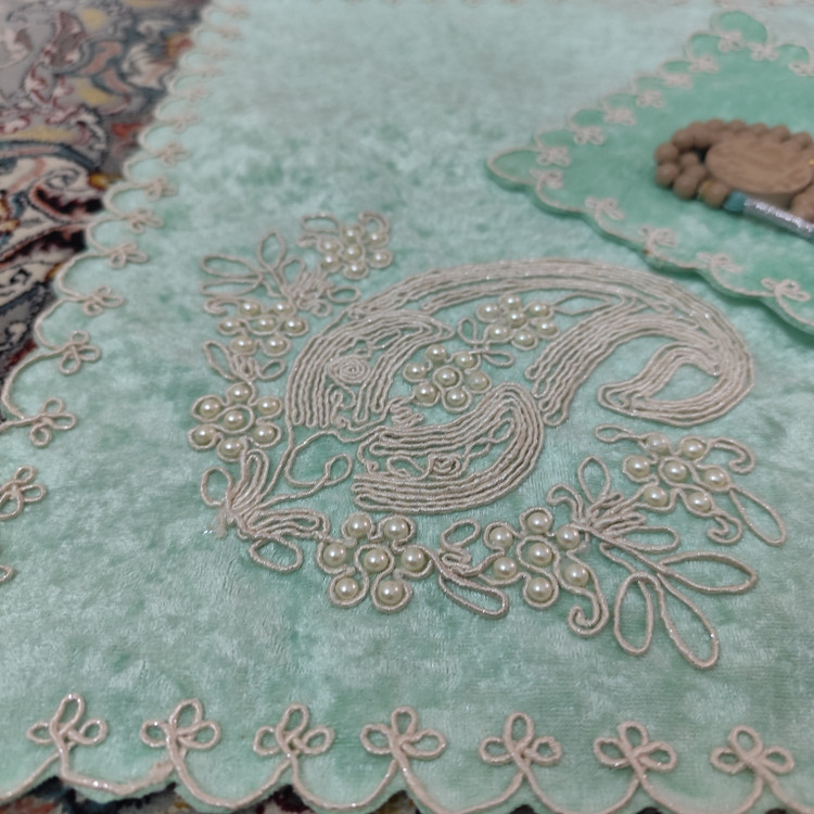 جانماز مخمل سبز پسته ای طرح صدف در اندازه38سانتیمتری