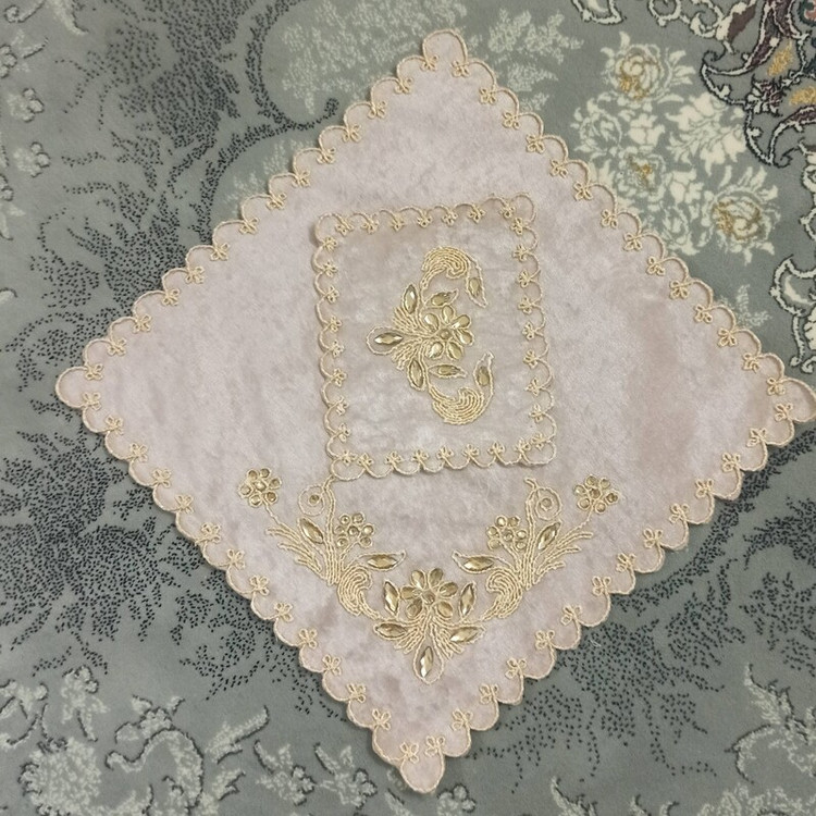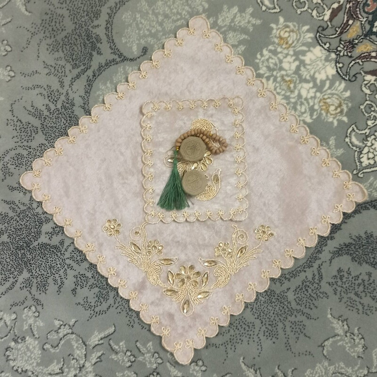 جانماز مخمل کرم نگین دار دوتکه38سانتیمتری