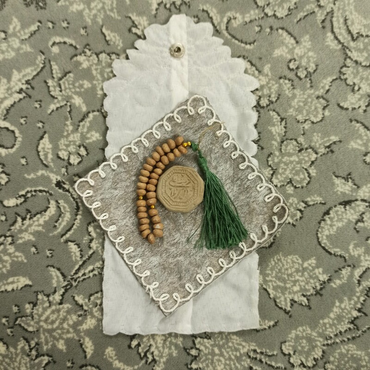 جانماز جیبی دکمه دار مخمل طوسی رنگ