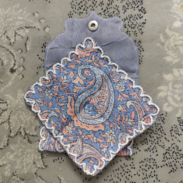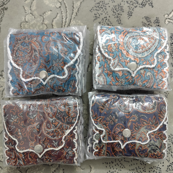جنس پارچه:ترمه کاربرد:جیبی دکمه دار قابل شست و شو میباشد ابعاد جانماز داخلی 10در11سانتیمتر ابعاد کیف جانماز10در10سانتیمتر جای مهر و تسبیح دارد تعداد موجود است