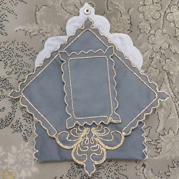 جانماز کیفی مخمل دکمه دار سه تکه طوسی رنگ در ابعاد19در15سانتیمتر