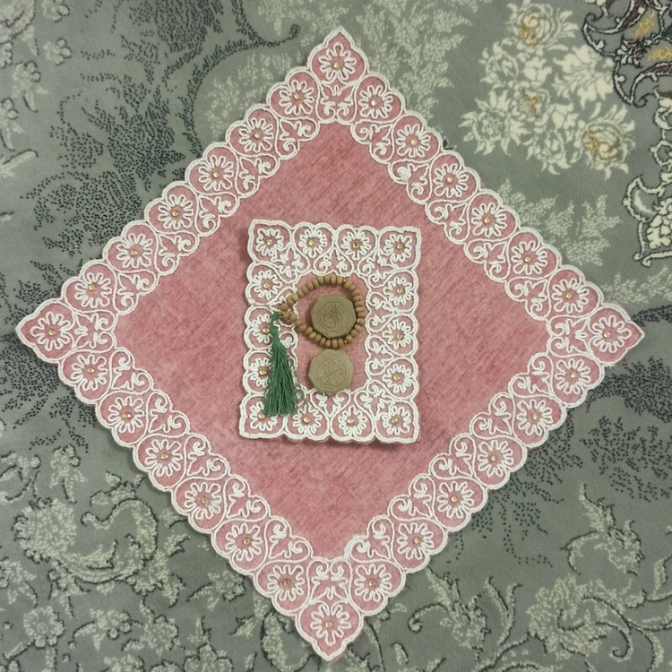 جنس جانماز:پارچه مخمل رنگ:صورتی نگین کاری شده ابعاد:38×38سانتیمتر قابل شست و شو مناسب استفاده روزانه